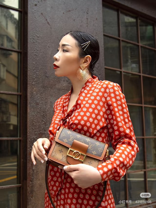 Combining Monogram and Monogram Reverse canvas, the Dauphine Chain Wallet reprises all the signatures of the iconic Dauphine collection: the vintage look, the calf-leather trim and the LV Circle clasp. This neat yet spacious wallet features a removable gold-tone chain, enabling it to be carried in several different ways.