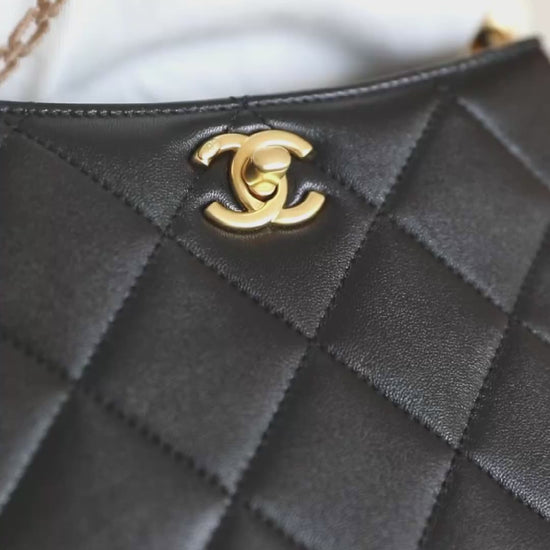 Chan New 24s Double Pearl Hobo Crossbody Bag