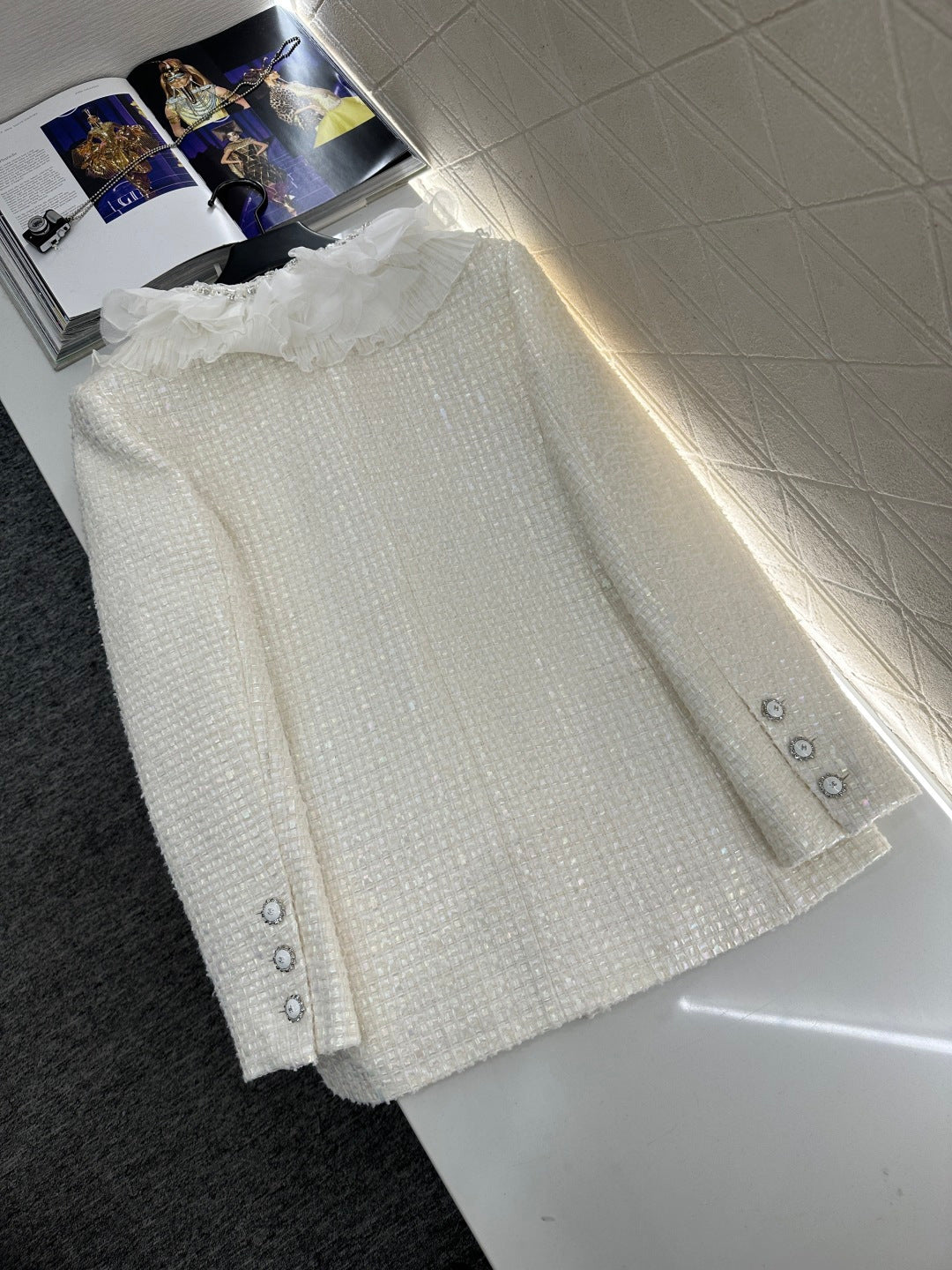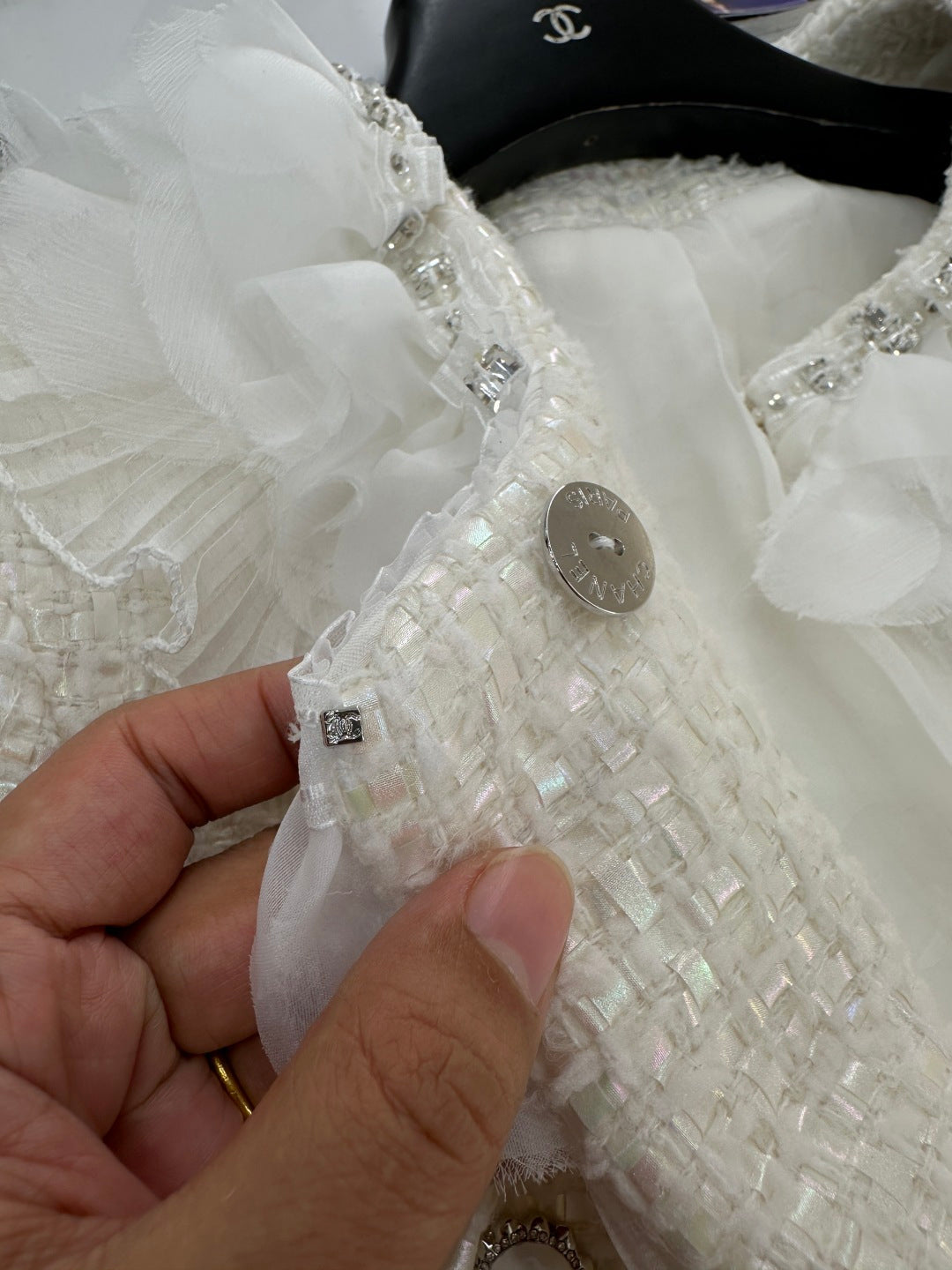 The Chanel Fall/Winter Haute Couture Ready-to-Wear collection pays tribute to the brand's elegant and minimalist aesthetic. This exquisitely handcrafted piece took 69 hours to complete.