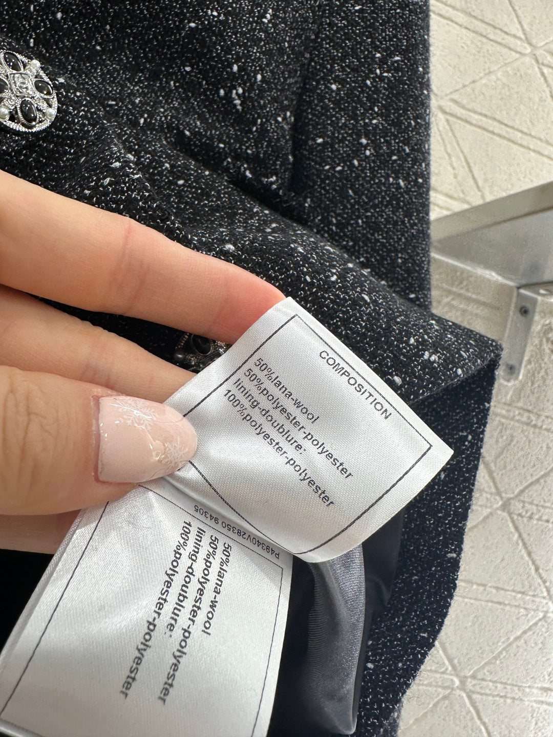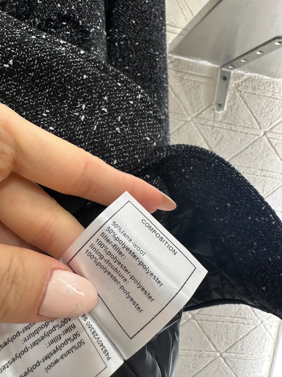 Material: 100% polyester - polyester 100% polyester - polyester 50% wool 50% poly lining