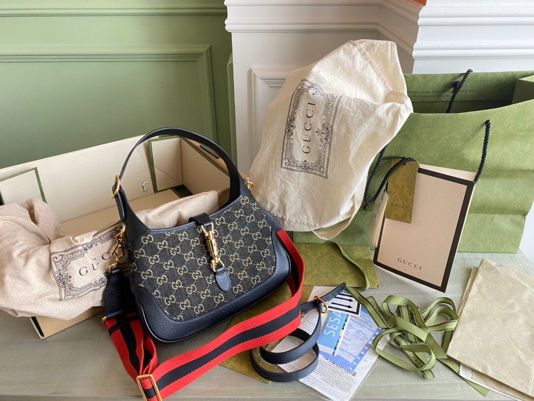 Guc Jackie1961 Black denim underarm bag