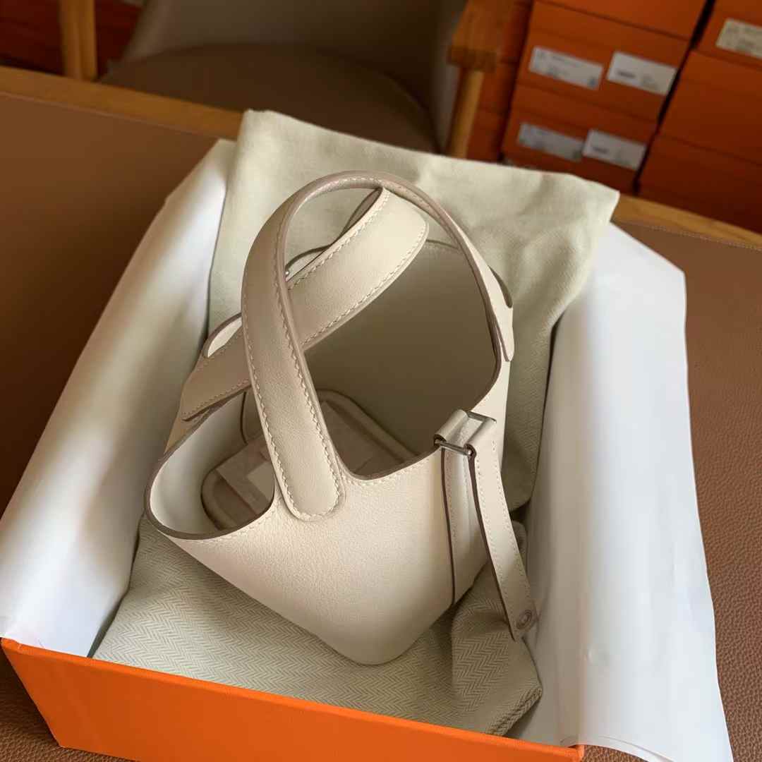 Hermes Picotin Lock 18 is made from high-quality full-grain leather, with a soft touch that preserves the natural grain texture. Every detail is meticulously handcrafted through hundreds of processes to perfectly replicate the original design. Using precise 1:1 craftsmanship, the shape, stitching, and metal fittings are identical to the original, accurate to the millimeter. It not only recreates the appearance of the original but also captures its essence, providing quality comparable to luxury retail standards. Each piece is a tribute to exceptional craftsmanship, designed for those who appreciate high quality.