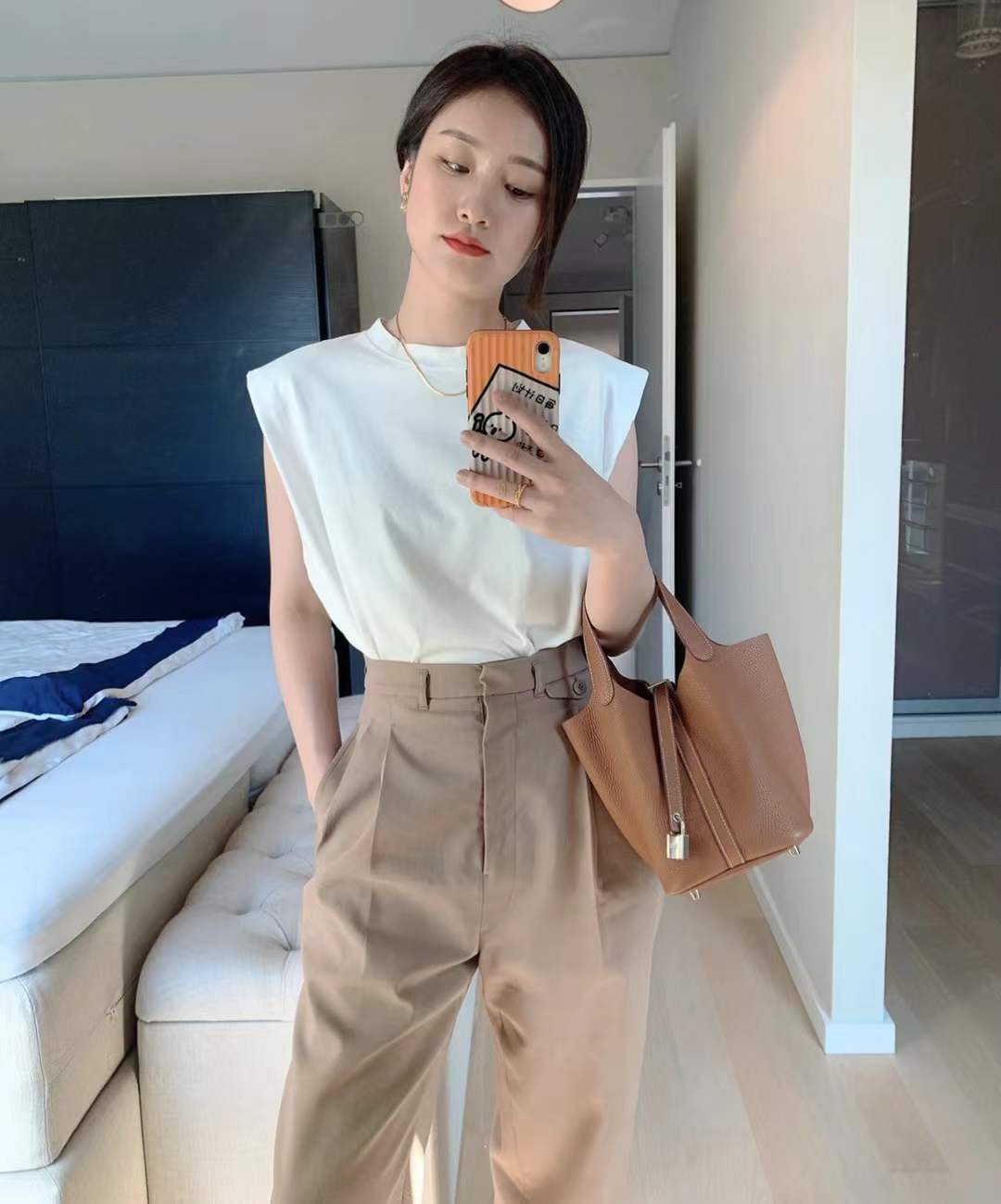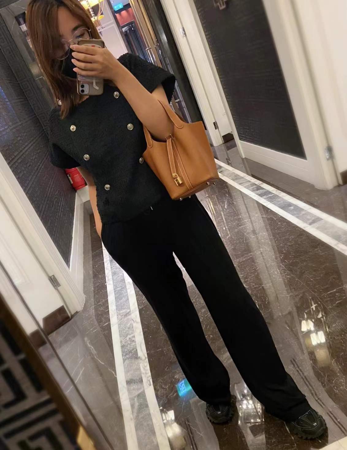 Hermes Picotin Lock 18 Golden brown is made from high-quality full-grain leather, with a soft touch that preserves the natural grain texture. Every detail is meticulously handcrafted through hundreds of processes to perfectly replicate the original design. Using precise 1:1 craftsmanship, the shape, stitching, and metal fittings are identical to the original, accurate to the millimeter. It not only recreates the appearance of the original but also captures its essence, providing quality comparable to luxury retail standards. Each piece is a tribute to exceptional craftsmanship, designed for those who appreciate high quality.