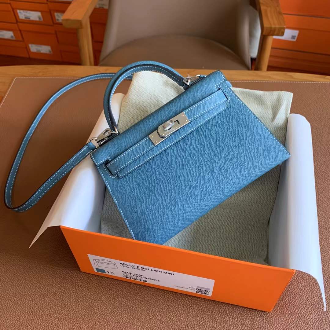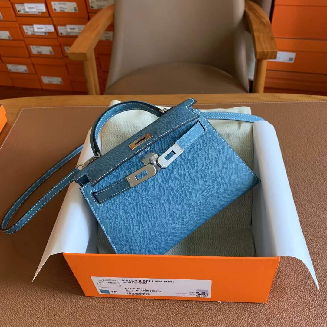 Hermes minikelly19 75 Denim Blue is made from high-quality full-grain leather, with a soft touch that preserves the natural grain texture. Every detail is meticulously handcrafted through hundreds of processes to perfectly replicate the original design. Using precise 1:1 craftsmanship, the shape, stitching, and metal fittings are identical to the original, accurate to the millimeter. It not only recreates the appearance of the original but also captures its essence, providing quality comparable to luxury retail standards. Each piece is a tribute to exceptional craftsmanship, designed for those who appreciate high quality.