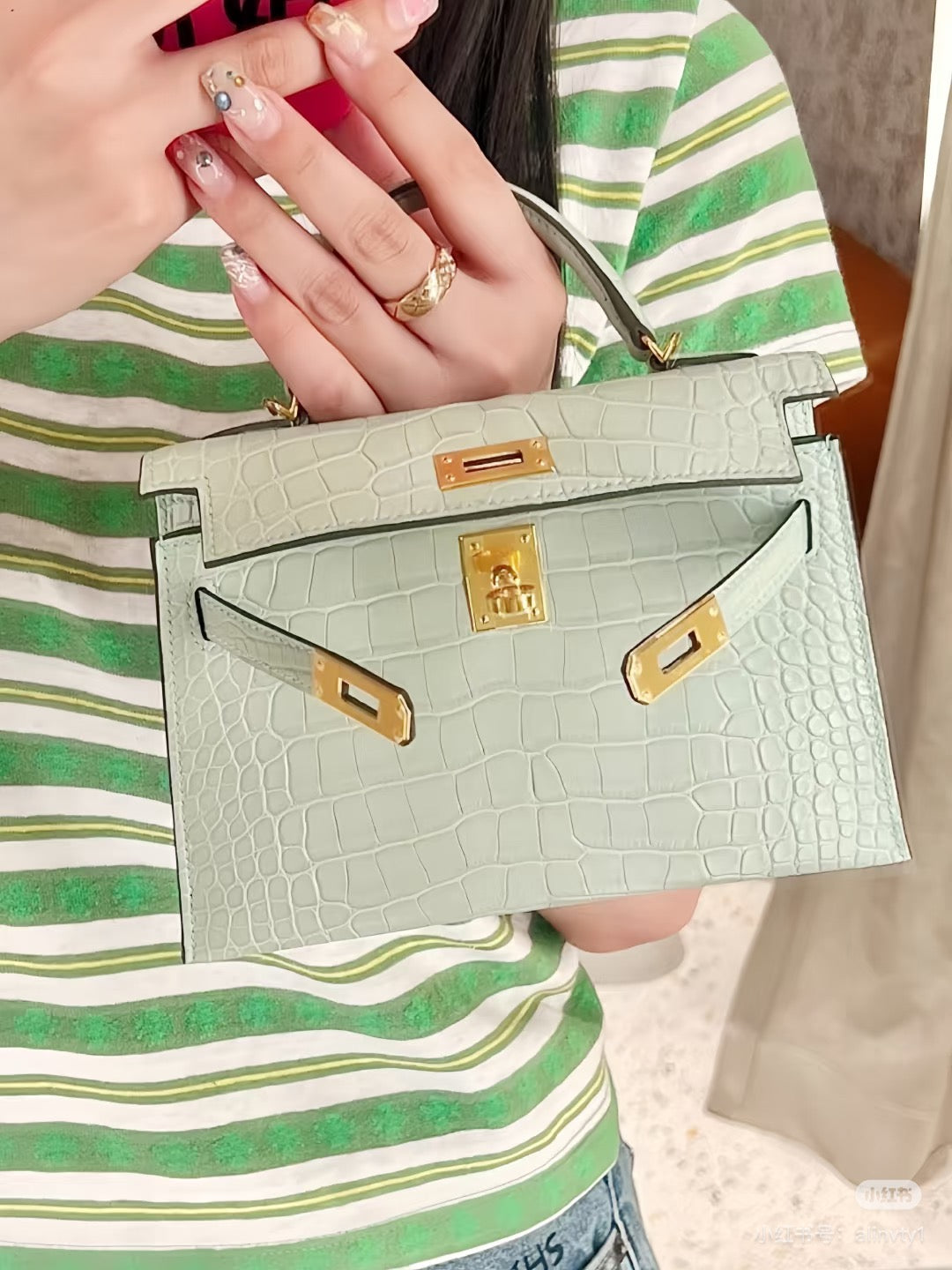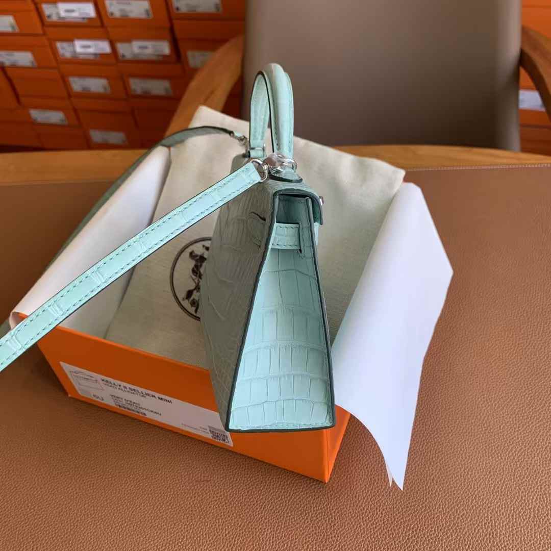 Hermes minikelly19 6U Mint Green is made from high-quality full-grain leather, with a soft touch that preserves the natural grain texture. Every detail is meticulously handcrafted through hundreds of processes to perfectly replicate the original design. Using precise 1:1 craftsmanship, the shape, stitching, and metal fittings are identical to the original, accurate to the millimeter. It not only recreates the appearance of the original but also captures its essence, providing quality comparable to luxury retail standards. Each piece is a tribute to exceptional craftsmanship, designed for those who appreciate high quality.