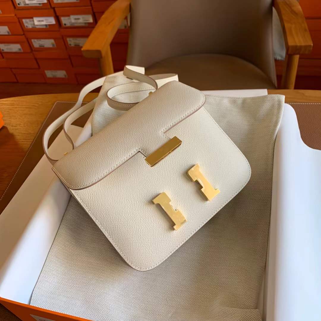 Hermes  constance19 Milkshake White  is made from high-quality full-grain leather, with a soft touch that preserves the natural grain texture. Every detail is meticulously handcrafted through hundreds of processes to perfectly replicate the original design. Using precise 1:1 craftsmanship, the shape, stitching, and metal fittings are identical to the original, accurate to the millimeter. It not only recreates the appearance of the original but also captures its essence, providing quality comparable to luxury retail standards. Each piece is a tribute to exceptional craftsmanship, designed for those who appreciate high quality.