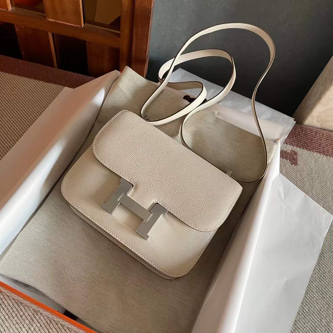 Hermes constance19 Milkshake White is made from high-quality full-grain leather, with a soft touch that preserves the natural grain texture. Every detail is meticulously handcrafted through hundreds of processes to perfectly replicate the original design. Using precise 1:1 craftsmanship, the shape, stitching, and metal fittings are identical to the original, accurate to the millimeter. It not only recreates the appearance of the original but also captures its essence, providing quality comparable to luxury retail standards. Each piece is a tribute to exceptional craftsmanship, designed for those who appreciate high quality.