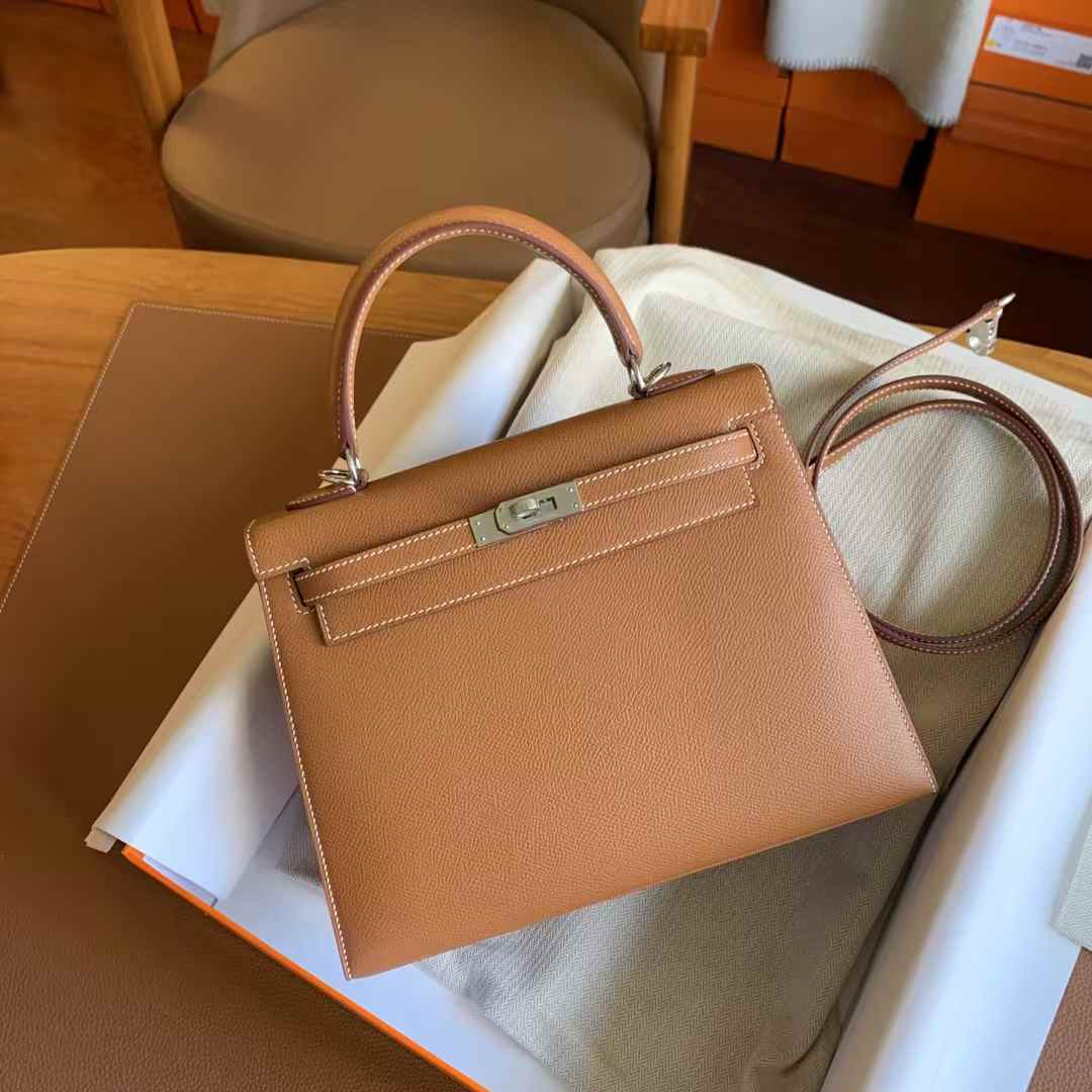 Hermes kelly25 Outer seam 37 Golden Brown is made from high-quality full-grain leather, with a soft touch that preserves the natural grain texture. Every detail is meticulously handcrafted through hundreds of processes to perfectly replicate the original design. Using precise 1:1 craftsmanship, the shape, stitching, and metal fittings are identical to the original, accurate to the millimeter. It not only recreates the appearance of the original but also captures its essence, providing quality comparable to luxury retail standards. Each piece is a tribute to exceptional craftsmanship, designed for those who appreciate high quality.