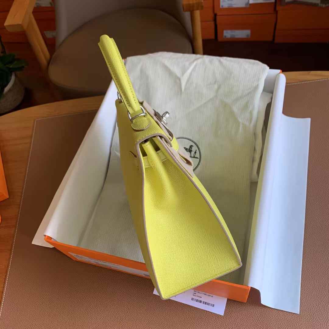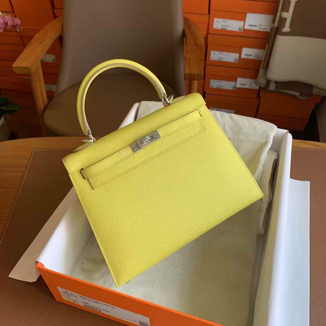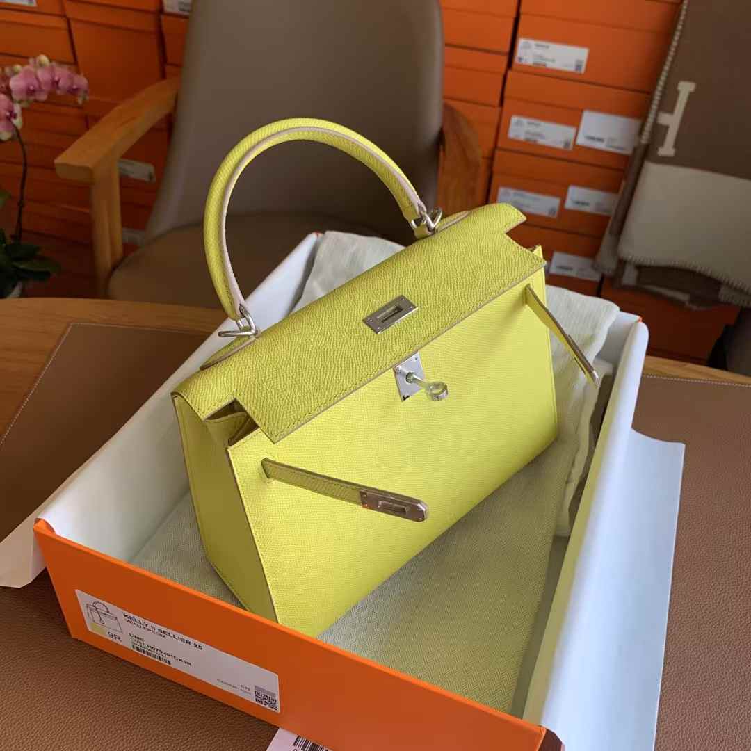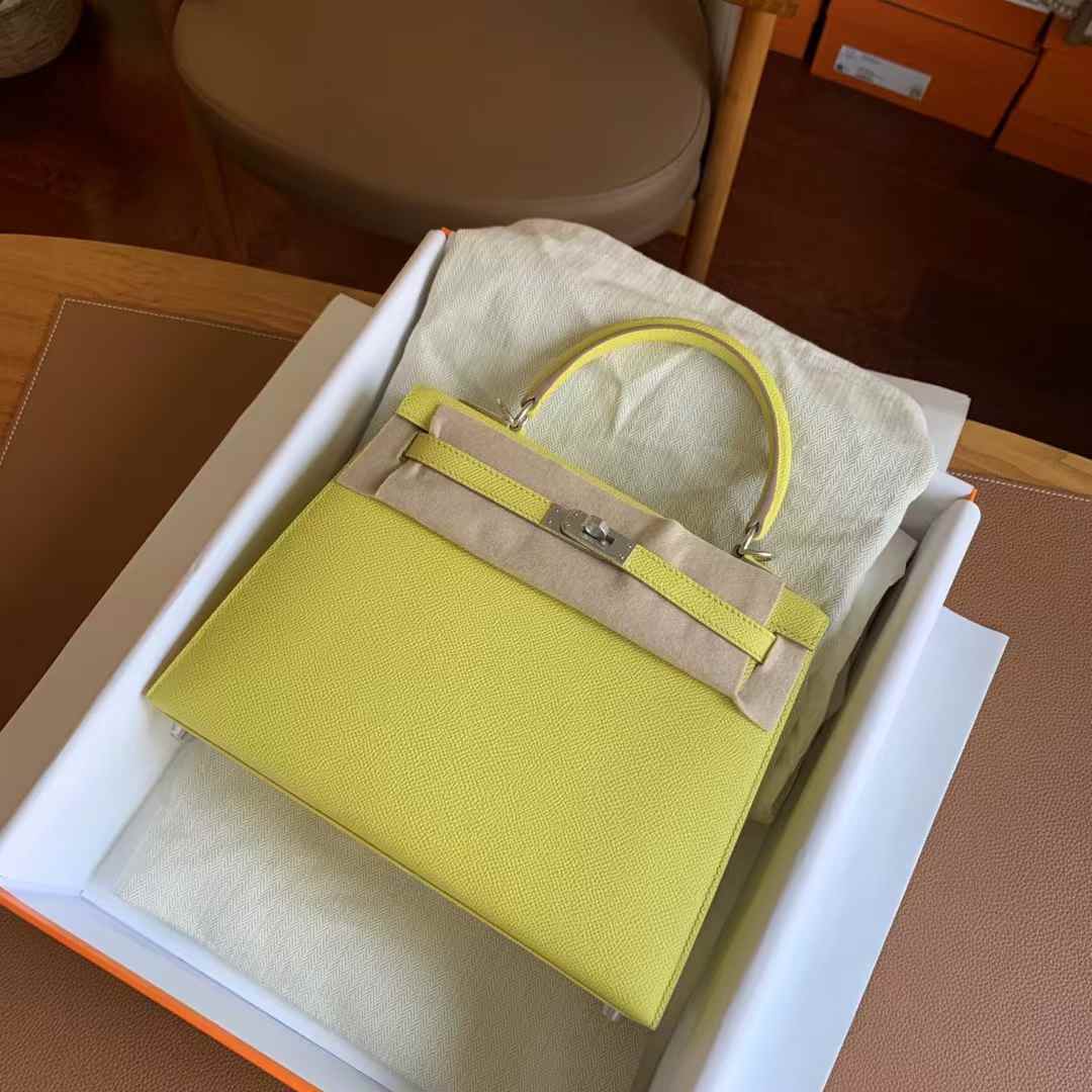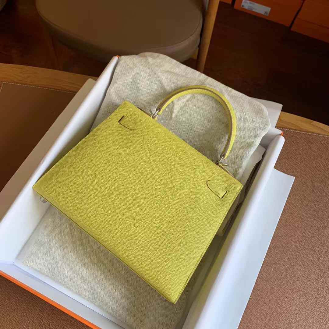 Hermes kelly25 Outer Seam 9R Lemon Yellow is made from high-quality full-grain leather, with a soft touch that preserves the natural grain texture. Every detail is meticulously handcrafted through hundreds of processes to perfectly replicate the original design. Using precise 1:1 craftsmanship, the shape, stitching, and metal fittings are identical to the original, accurate to the millimeter. It not only recreates the appearance of the original but also captures its essence, providing quality comparable to luxury retail standards. Each piece is a tribute to exceptional craftsmanship, designed for those who appreciate high quality.