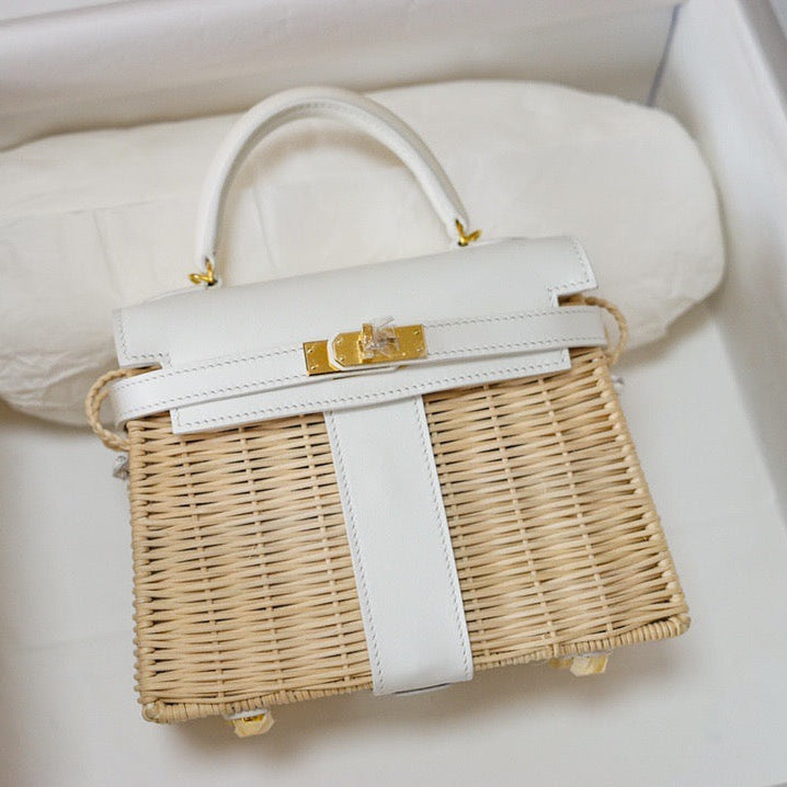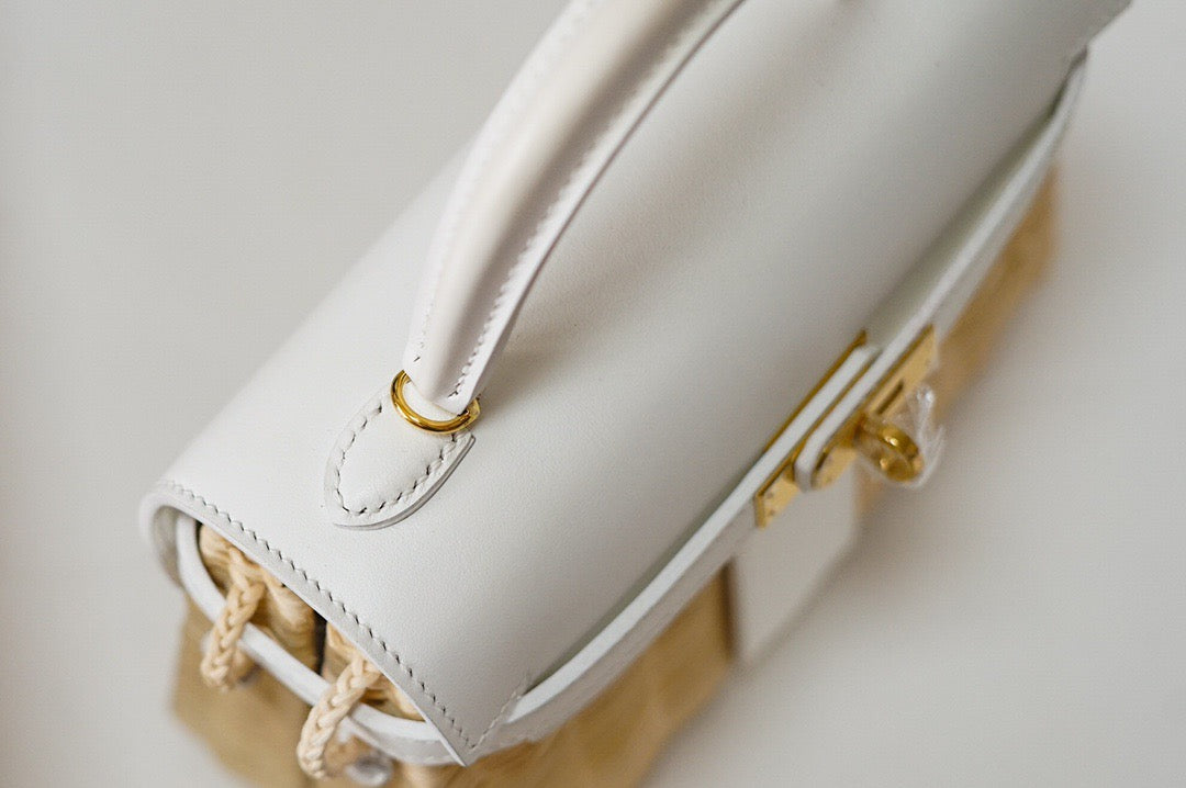 Hermes kelly20 Picnic 10 Milkshakes White is made from high-quality full-grain leather, with a soft touch that preserves the natural grain texture. Every detail is meticulously handcrafted through hundreds of processes to perfectly replicate the original design. Using precise 1:1 craftsmanship, the shape, stitching, and metal fittings are identical to the original, accurate to the millimeter. It not only recreates the appearance of the original but also captures its essence, providing quality comparable to luxury retail standards. Each piece is a tribute to exceptional craftsmanship, designed for those who appreciate high quality.