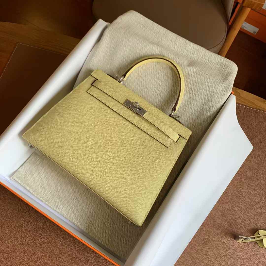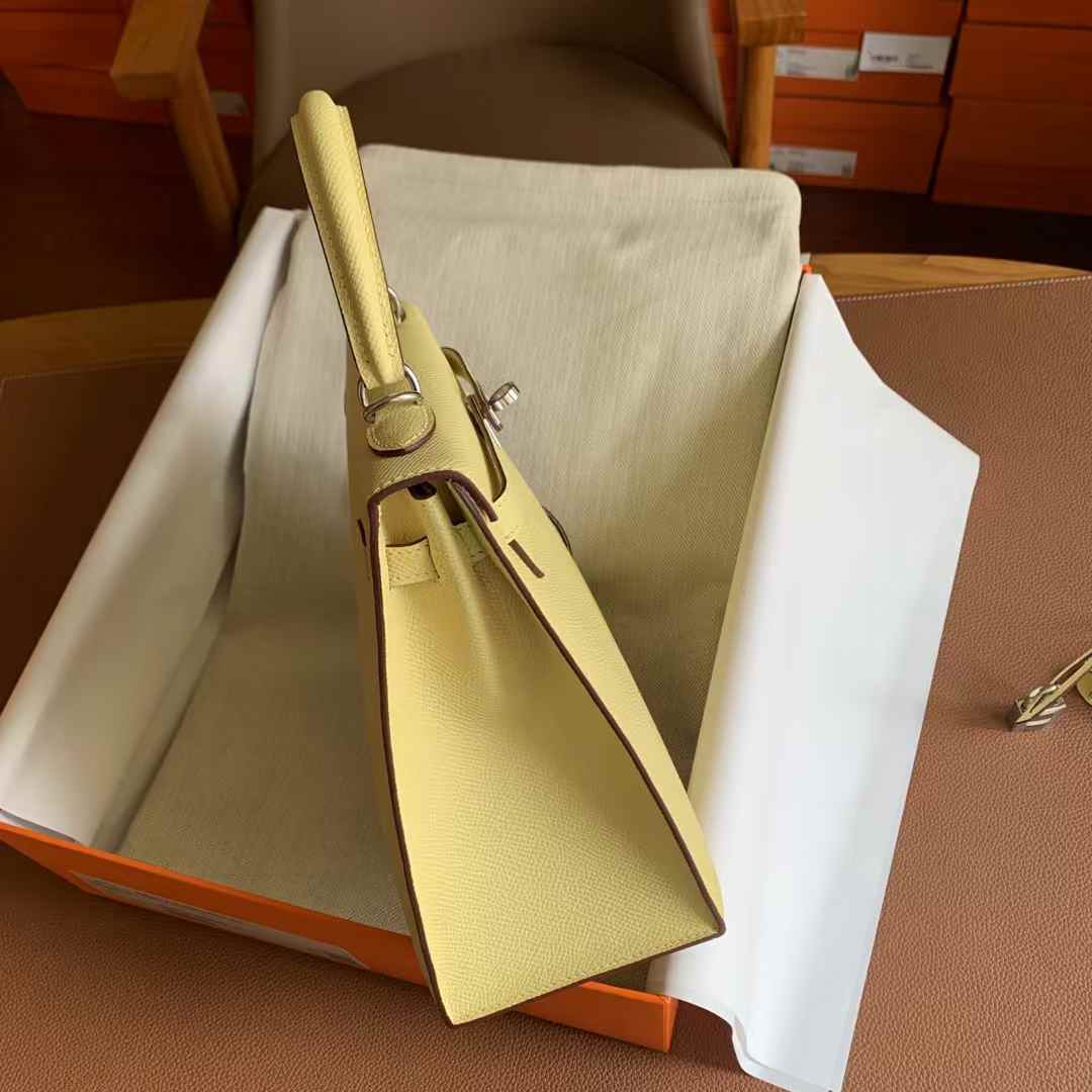 Hermes kelly25 Outer seam 1Z chick yellow is made from high-quality full-grain leather, with a soft touch that preserves the natural grain texture. Every detail is meticulously handcrafted through hundreds of processes to perfectly replicate the original design. Using precise 1:1 craftsmanship, the shape, stitching, and metal fittings are identical to the original, accurate to the millimeter. It not only recreates the appearance of the original but also captures its essence, providing quality comparable to luxury retail standards. Each piece is a tribute to exceptional craftsmanship, designed for those who appreciate high quality.