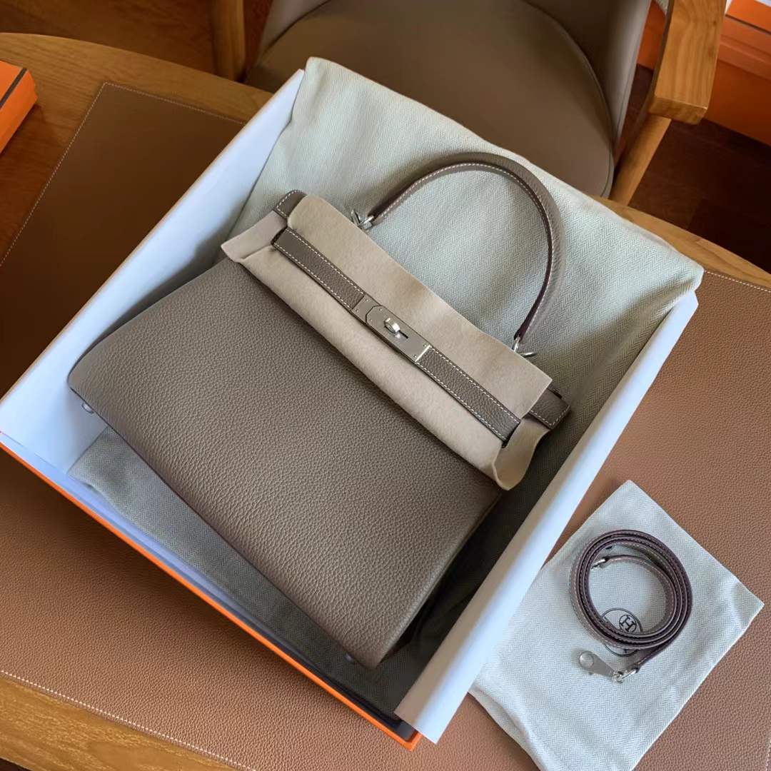 Hermes kelly28 Inner seam 18 Elephant Gray is made from high-quality full-grain leather, with a soft touch that preserves the natural grain texture. Every detail is meticulously handcrafted through hundreds of processes to perfectly replicate the original design. Using precise 1:1 craftsmanship, the shape, stitching, and metal fittings are identical to the original, accurate to the millimeter. It not only recreates the appearance of the original but also captures its essence, providing quality comparable to luxury retail standards. Each piece is a tribute to exceptional craftsmanship, designed for those who appreciate high quality.