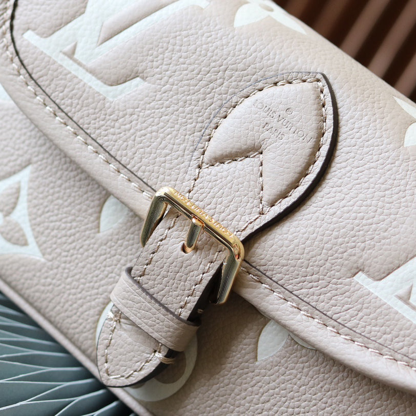 Crafted from Monogram Empreinte leather, the Nano Diane is a petite version of the Diane bag. Key details of the original design are meticulously replicated, including the rounded flap and belt-style closure. Large enough to hold a smartphone and other essentials, this is an ideal day-to-evening style whose removable handle and removable, adjustable strap offer great versatility.