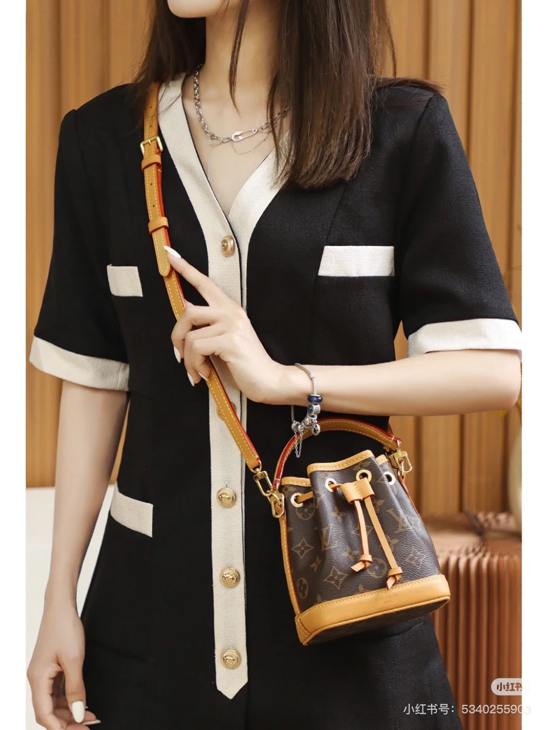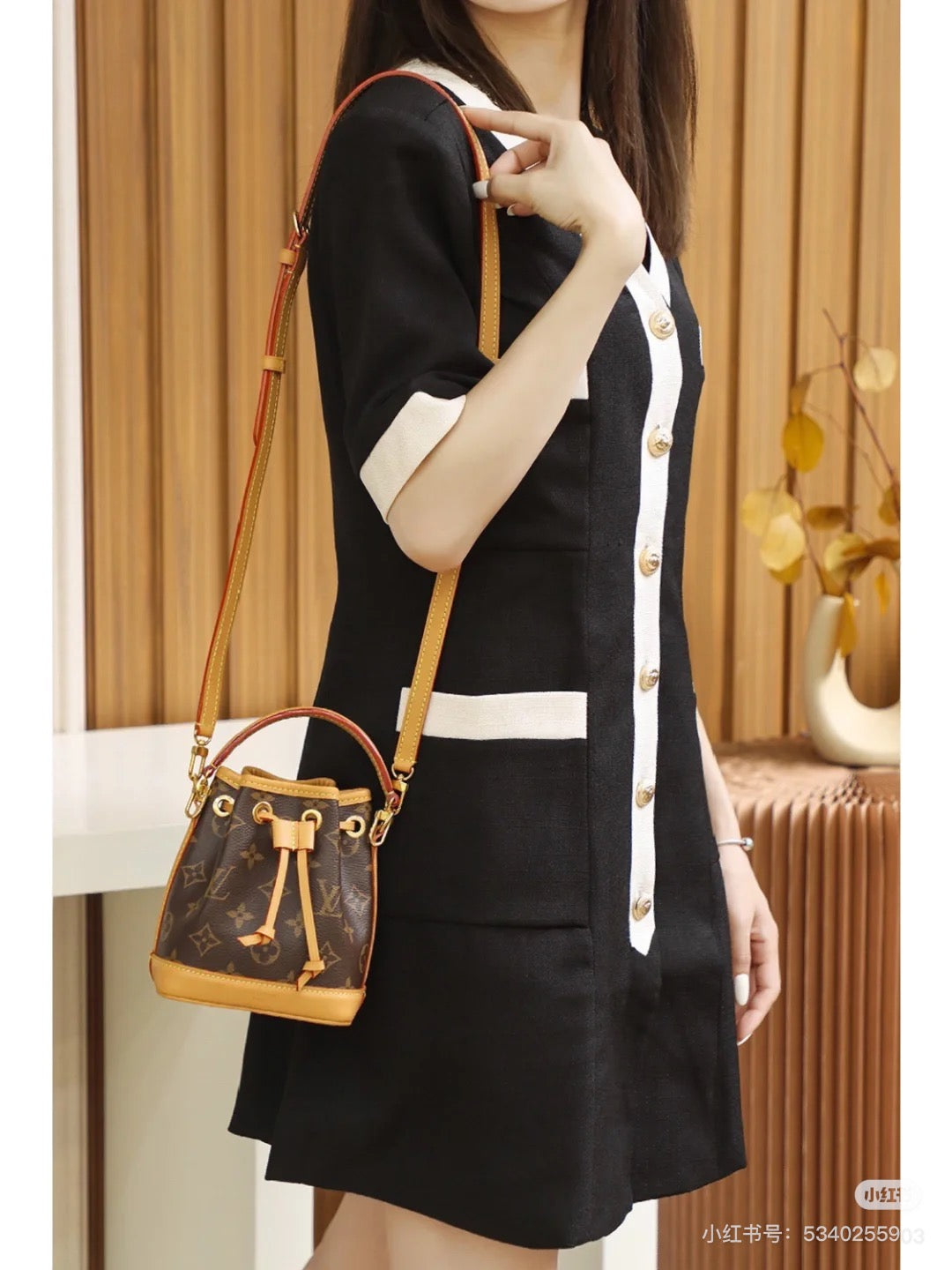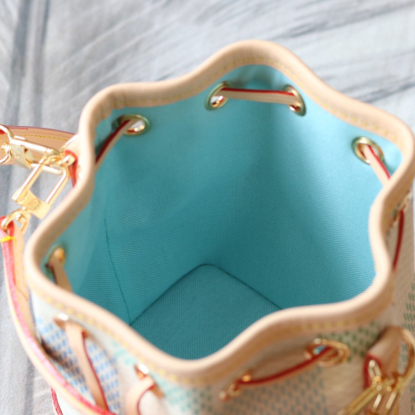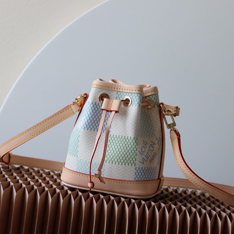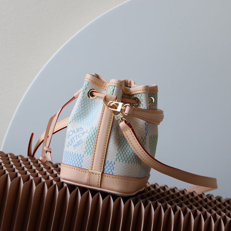 The Nano Noé is a miniature version of the iconic Noé bag, created in 1932. Crafted from Monogram canvas with trim in natural cowhide leather, this tiny Nano Noé combines heritage with modern functionality. Its removable handle and removable, adjustable strap offer multiple carry options, while it is spacious enough to hold essentials including keys, a card holder and a smartphone.