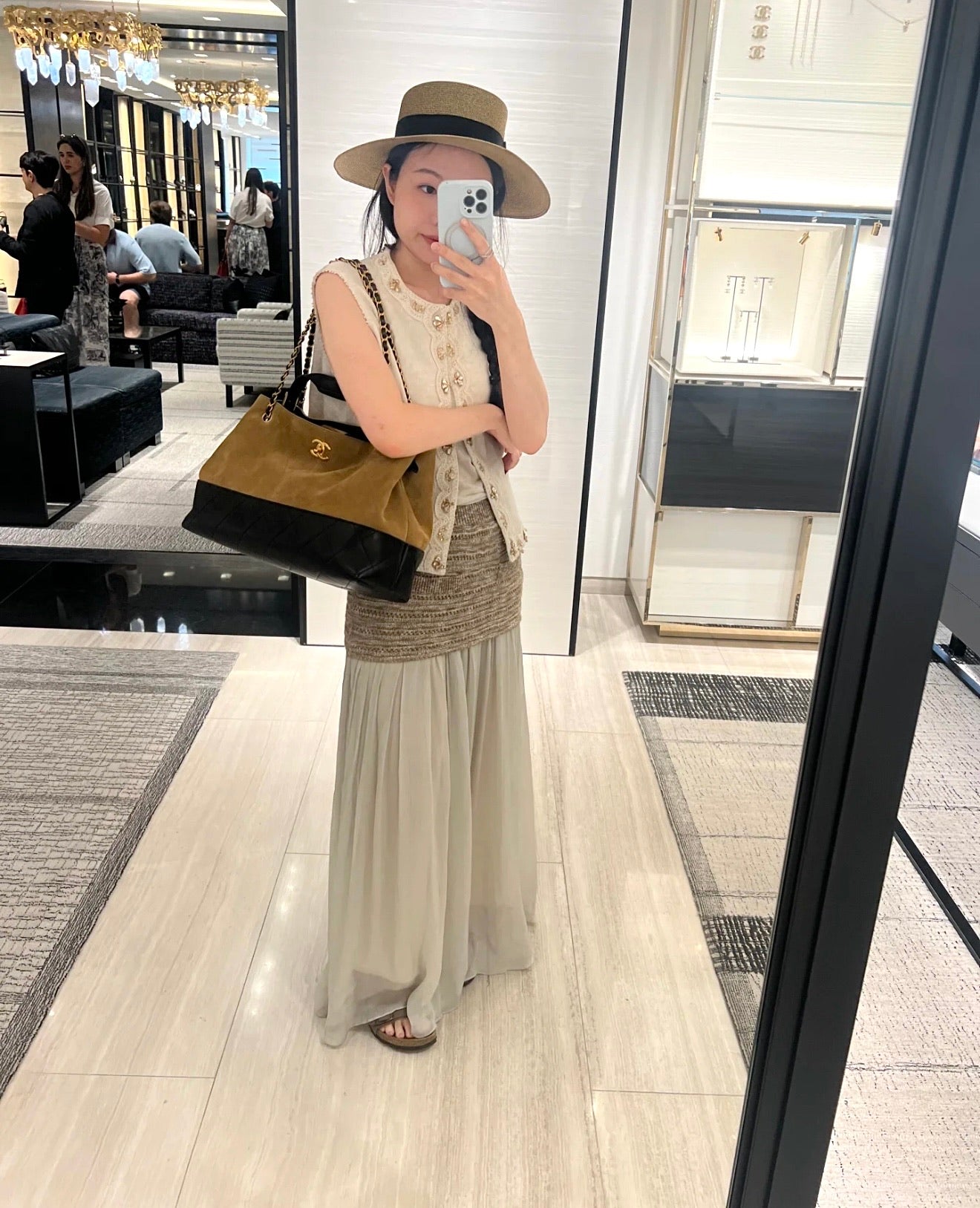 New CHAN Antelope leather color matching vertical Hobo bag