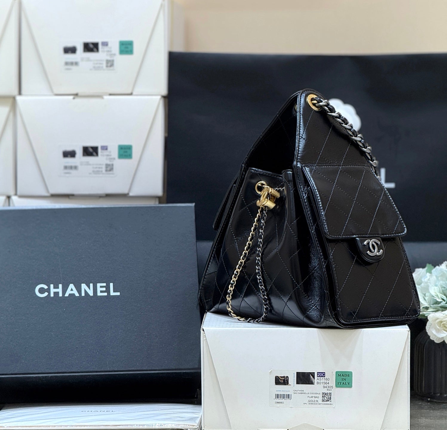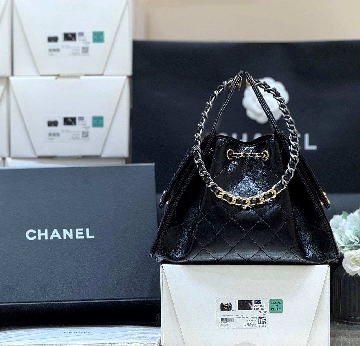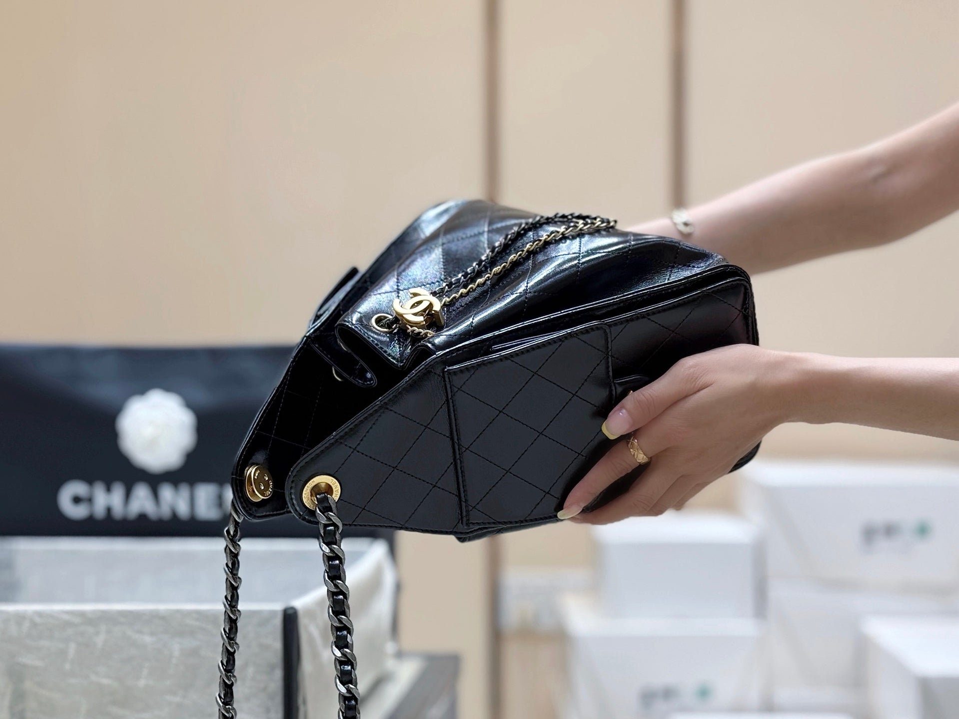 New CHAN Mandarin Duck Link Shiny Cowhide Bag