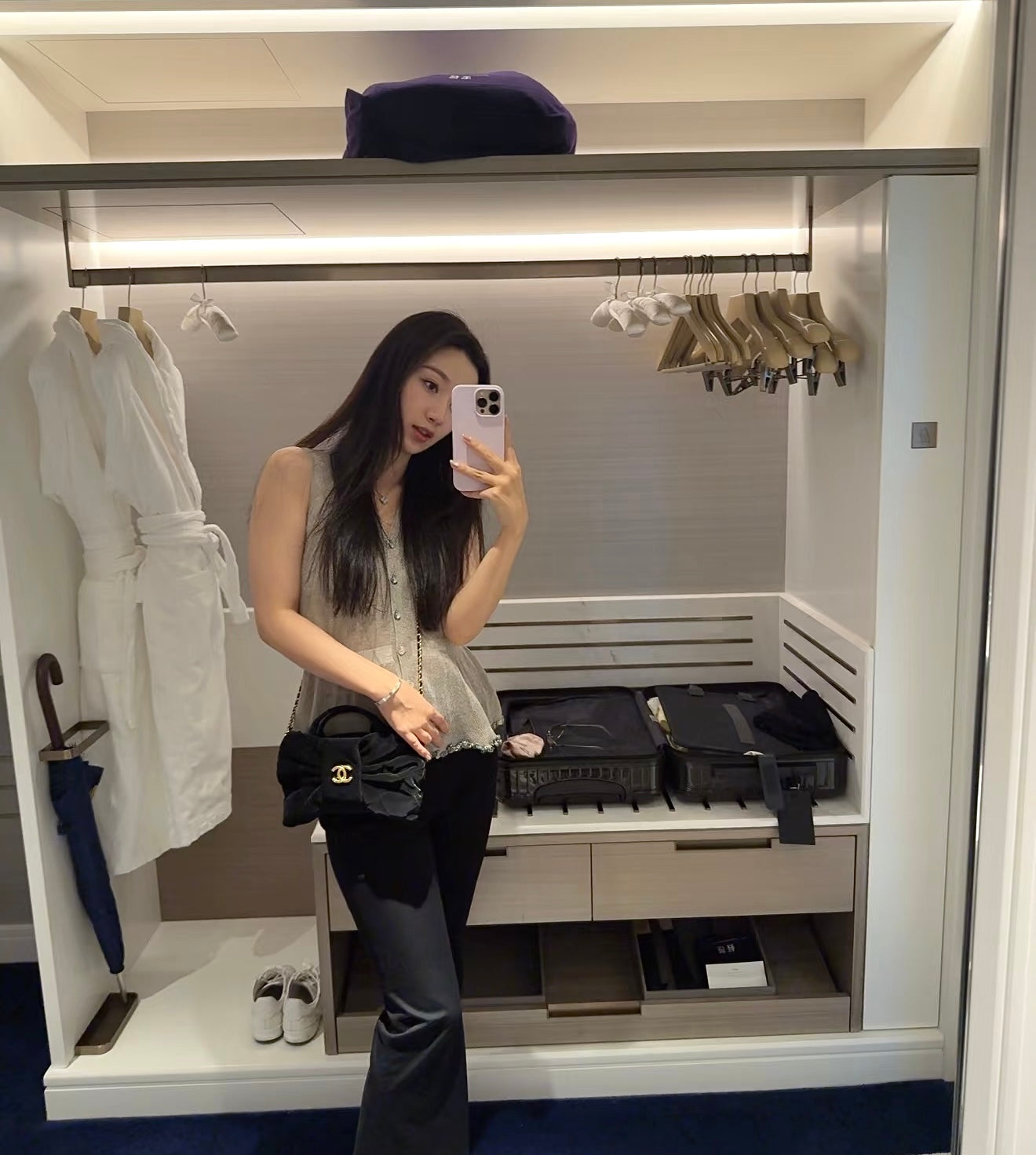 New CHAN velvet bow bag