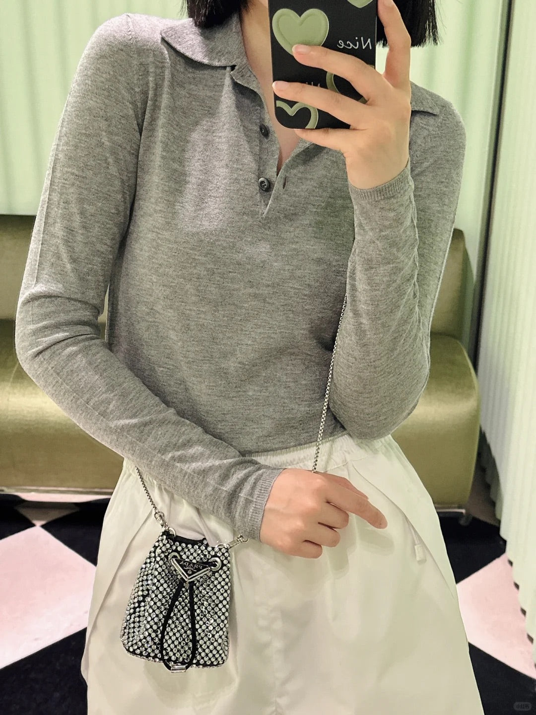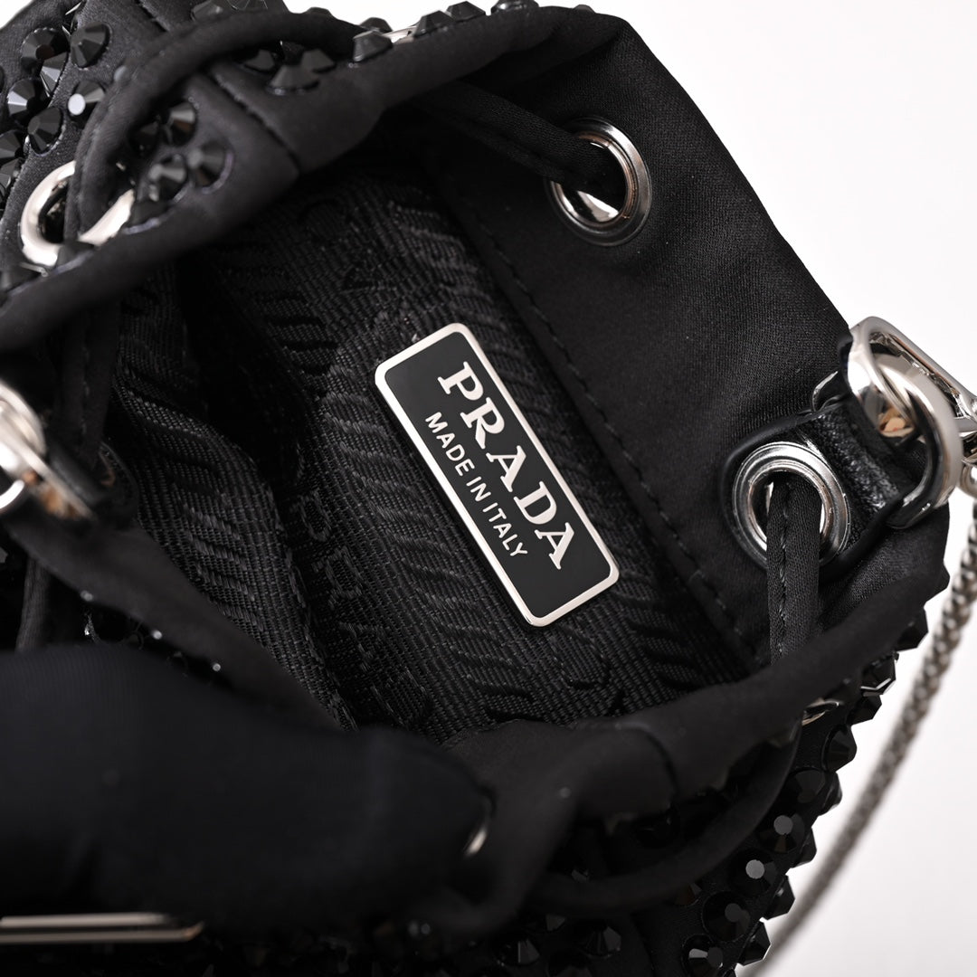 A dazzling design characterizes this triangular mini-pouch embellished with all-over crystals. The detachable chain shoulder strap and enameled metal triangle logo complete the accessory.
