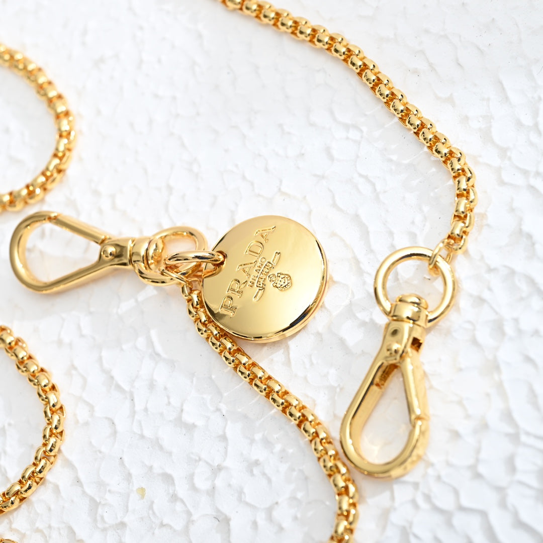 This precious and sophisticated patent leather mini-pouch plays with elegant, shiny details. The accessory, which comes with a removable chain shoulder strap, is decorated with the enameled metal triangle logo that accents the drawstring closure